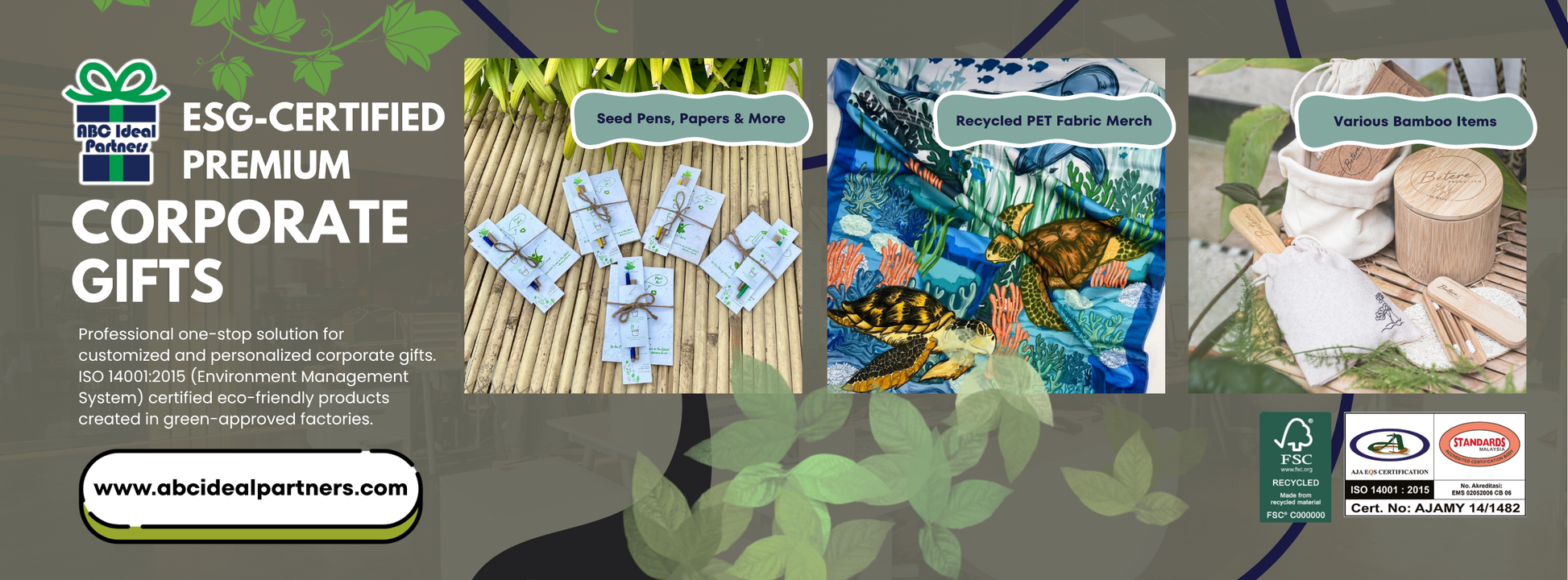 ABC Ideal Partner is a corporate gifting company specialising in customised and environmentally friendly products. With ISO 14001 certification and a strong commitment to recyclable and biodegradable materials, the company supports international businesses in sourcing quality GWP and corporate gifts aligned with ESG initiatives.